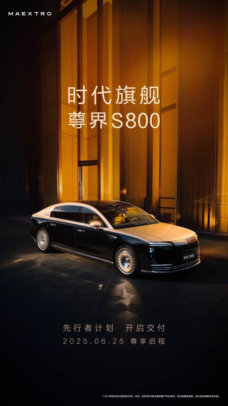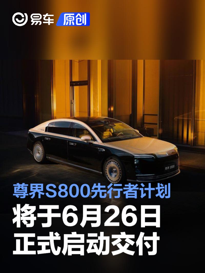 易车讯 6月25日,鸿蒙智行官方宣布尊界S800先行者计划,将于6月26日正式启动交付。新车于5月30日上市,共推出4款车型,售价区间70.8-101.8万元。