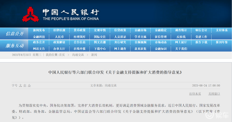 易车讯 日前,央行等六部门联合印发《关于金融支持提振和扩大消费的指导意见》,《意见》提到,积极开展汽车贷款业务,适当减免汽车以旧换新过程中提前结清贷款产生的违约金。