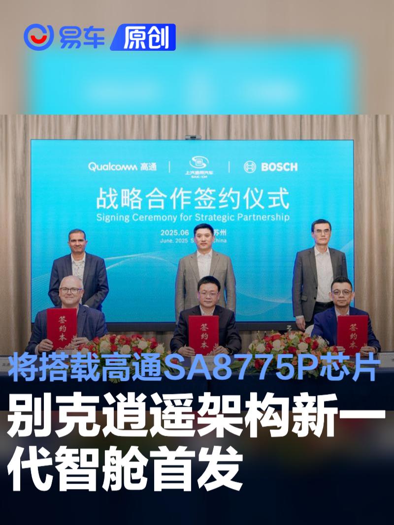 易车讯 6月26日,上汽通用汽车宣布与全球顶级合作伙伴高通、博世达成三方战略合作,共同庆祝全球首个基于高通SA8775P芯片开发的智能座舱域控制器样品成功下线。该技术成果将率先应用于别克逍遥超级融合整车架构,计划于2025年下半年在别克高端新能源子品牌“至境”首款轿车上实现全球首发量产,为用户带来革命性智能座舱体验。