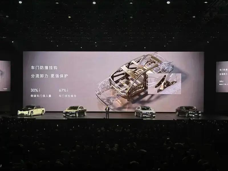 尊界S800搭载了全新的玄武架构,拥有10横9纵车身架构,配备了2000MPa的加强一体式门环,侧车顶最大承压156kN,整车扭转刚度53300N·m/deg。此外,新车全车13气囊超高配置,四重门锁机制含ADS联动解锁。