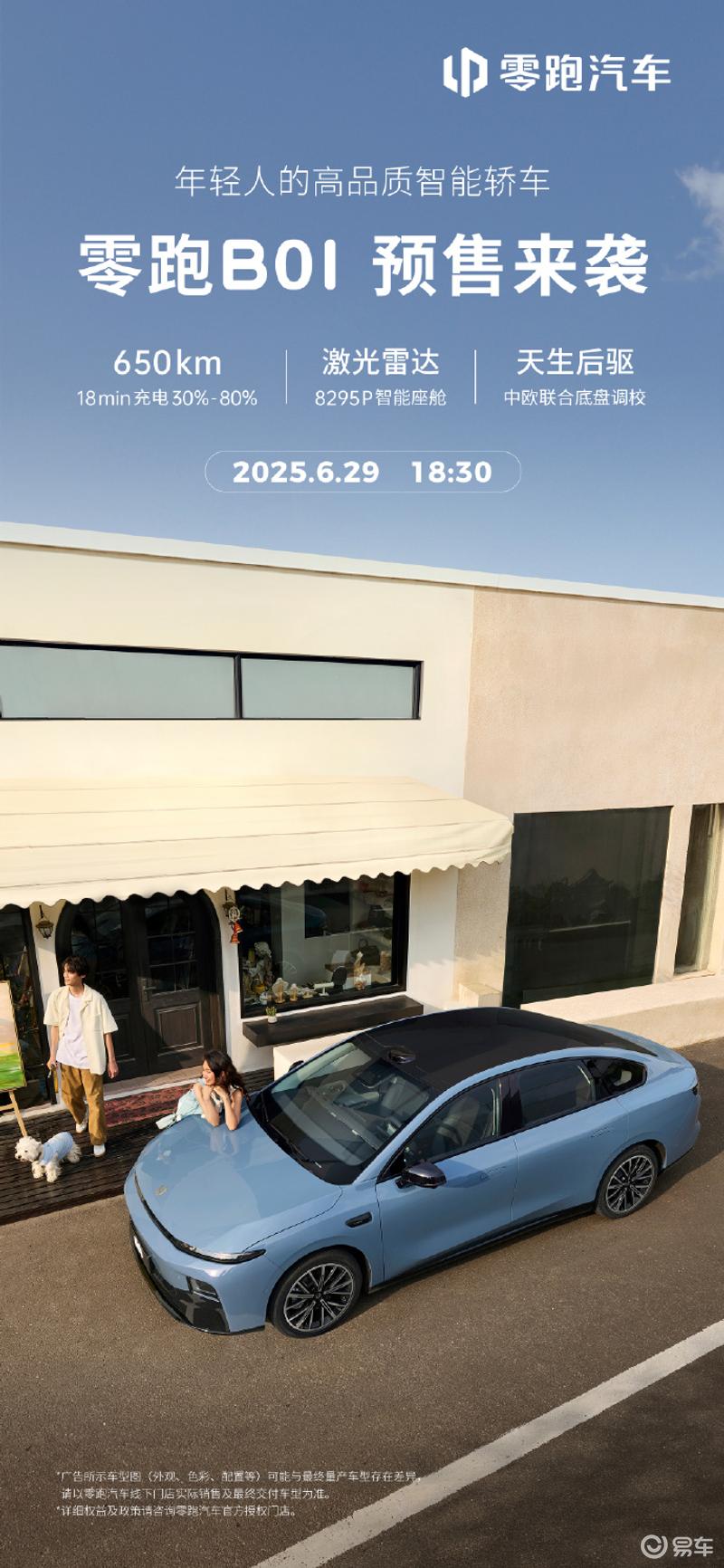 易车讯 今日,零跑汽车官宣:零跑B01将于6月29日预售。官方称其为15万级新能源轿车越级之作。新车搭载激光雷达,18min可将车辆从30%电量充至80%。