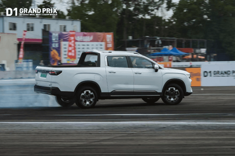 全场最炸裂的焦点,莫过于吉利雷达地平线——全球首款挑战顶级飘移正赛的量产纯电皮卡! 更令人惊叹的是,它是以原厂量产状态、未经任何竞技改装的姿态,完美征服了高难度的飘移赛道!