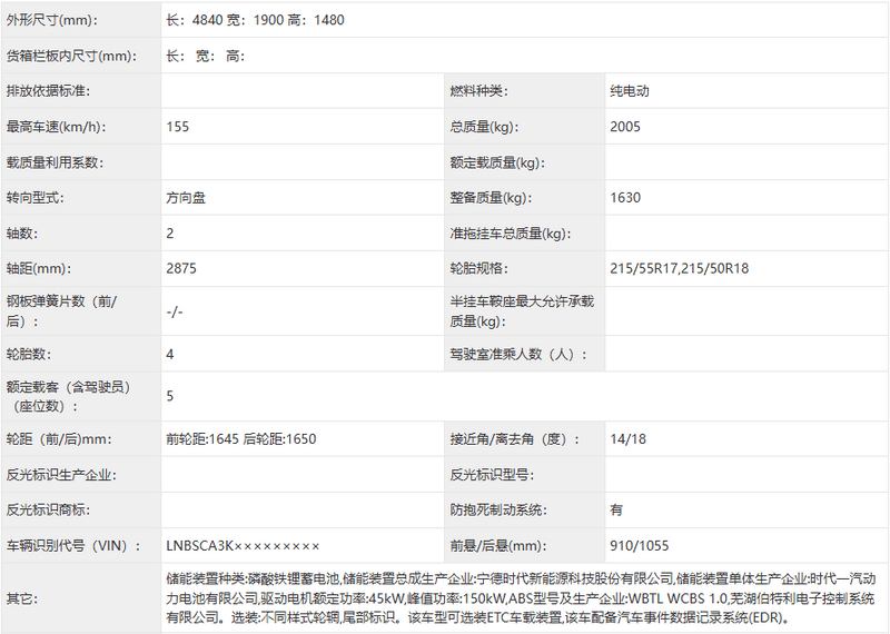 动力方面,新车搭载宁德时代生产的磷酸铁锂蓄电池,电机峰值功率150kW。