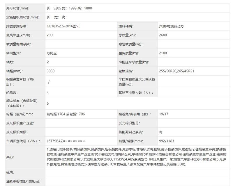 新车尾部采用较为简约的设计风格,贯穿设计的尾灯组是尾部的点睛之笔,点亮后具备很高的辨识度。车身侧面,B柱较宽的银色饰条很显豪华,第二四边形的尾窗比较方正面积非常大,显沉稳的同时很符合这个级别大型车的定位。新车筋线从车头一直延伸至车尾,提升了侧面的视觉冲击力,而优秀的离地间隙预示这通过性上非常值得期待,此外还会配备造型精致的多辐铝合金轮圈。车身尺寸方面,新车长宽高为5205/1999/1800mm,轴距为3030mm。