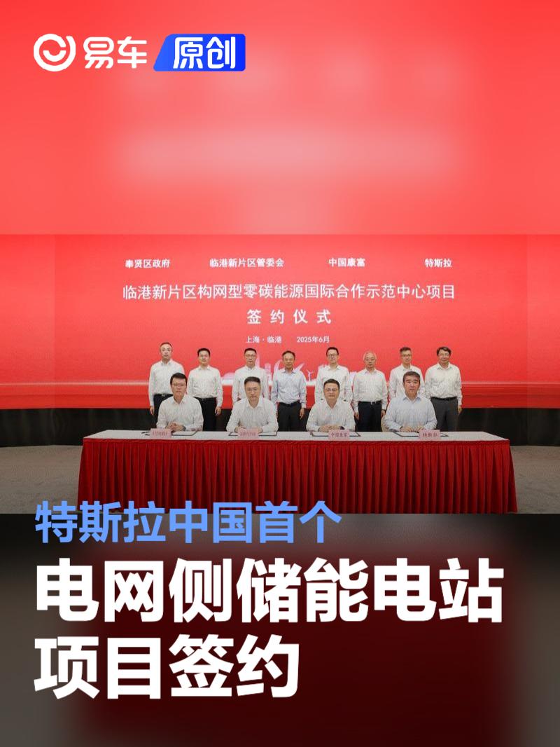 易车讯 6月20日,上海市临港新片区管委会、上海市奉贤区人民政府、中国康富国际租赁股份有限公司(以下简称“中国康富”)、特斯拉(上海)有限公司(以下简称“特斯拉”)围绕构网型零碳能源国际合作示范中心项目举办签约仪式。本次项目签约标志着总投资40亿元的吉瓦时级电网侧独立储能电站及配套重大项目正式落户临港。