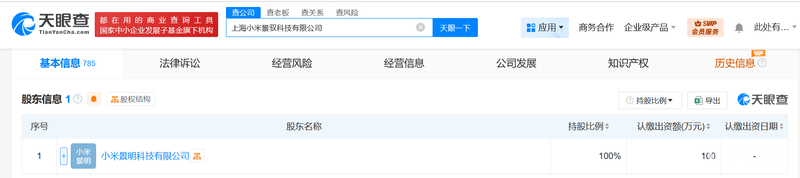 从股东信息可知,上海小米景驭科技有限公司由小米景明科技有限公司全资持股。这表明小米景明对新公司发展有着明确规划与战略考量,依托自身资源优势,助力新公司在相关领域的开拓与发展。此次新公司的成立,无疑是小米景明在商业版图扩张上的重要一步,未来其在各业务领域的发展态势,值得持续关注。