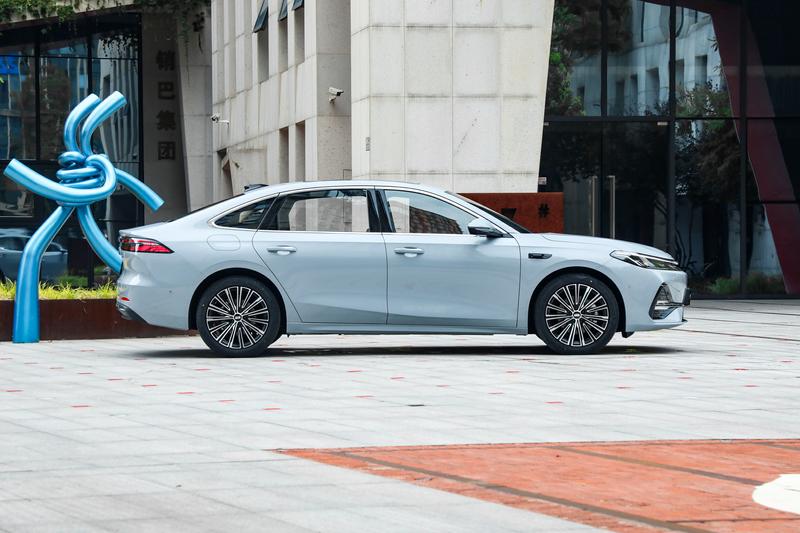 车身侧面,新车采用非常动感的溜背设计,犀利的腰线从前翼子板一致贯穿至尾灯组,大幅提升了侧面的视觉冲击力。车身尺寸方面,新车长宽高为4918/1905/1495mm,轴距为2845mm。