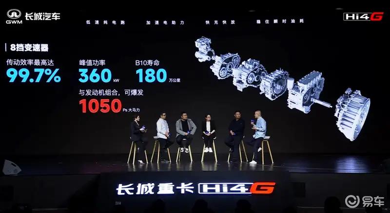 动力方面,长城重卡搭载了长城Hi4-G超级智能混动系统,使用的P2+P2.5双电机的形式,发动机由福田康明斯提供,变速箱则是长城自研的8挡DHT。两个电机分别是245匹,发动机560匹,综合马力达到了1050匹。Hi4-G独特的双电机技术路线专为重卡工况量身打造,通过高度集成的9合1动力域控制器,实现了13L排量发动机释放17L排量动力的效果。