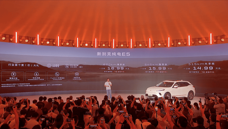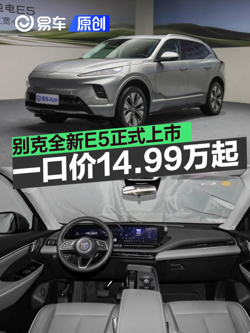 易车讯 6月19日,别克全新E5正式上市,共推出3款车型,指导价16.99-18.99万元,一口价14.99-16.99万元。别克E5是上汽通用最早于2023年4月上市的纯电SUV,而这一次上市的全新E5在许多层面都进行了升级。同时,官方发布行业首个宽芯大礼,零自燃承诺 1:1赔付,以及三电系统终身质保。