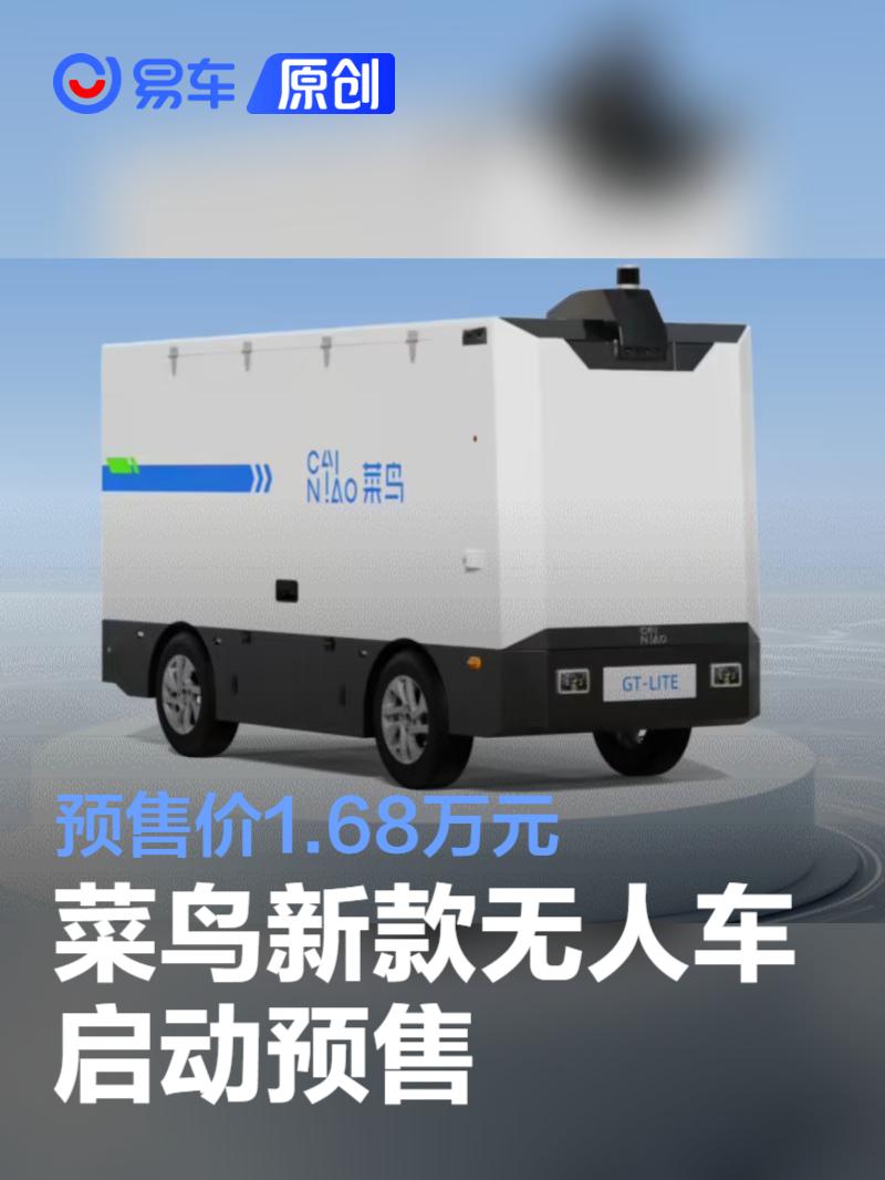 易车讯 今日,菜鸟正式推出新款无人车菜鸟GT-LITE并开启预售,这款车定价2.18万元,叠加限时优惠后,预售价仅为1.68万元。据菜鸟方面介绍,该车可实现L4级无人驾驶,适用于快递物流场景。