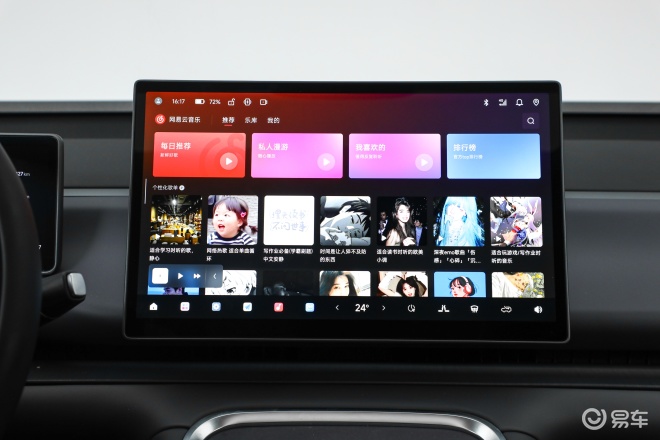 后排吸顶屏可与中控屏互动联播,支持爱奇艺、芒果 TV、全民 K 歌、网易云音乐、酷狗等音视频 APP,可通过语音/触控/手机遥控器多模式操作,也可投屏至前排中控屏操作。智能化配置方面,零跑C16搭载Leapmotor OS智能车机系统,内置有高通骁龙8295芯片,支持双区域语音唤醒识别、可见即可说、5G网络、OTA升级、车载KTV以及手机APP远程控制等。
