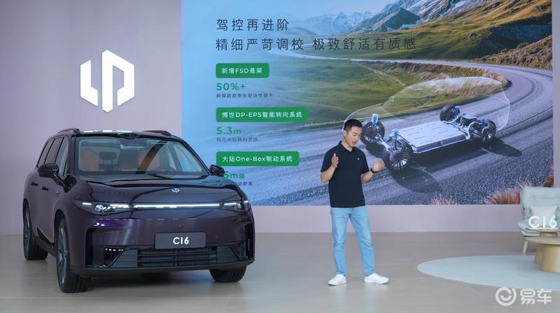 动力方面,零跑C16推出纯电版和增程版两种动力,纯电版车型升级81.8千瓦时大电池,续航达到630公里。新车采用CTC2.0+全域800V高压碳化硅快充平台,仅需18分钟就可将电量从30%充至80%。增程版车型纯电续航280公里,综合续航达1150公里。底盘方面,新车新增FSD悬架,颠簸路面乘坐舒适性大幅提升,新车采用博世DP-EPS智能转向系统,转弯半径仅为5.3m,更加灵活,用时还配备了大陆One-Box制动系统。