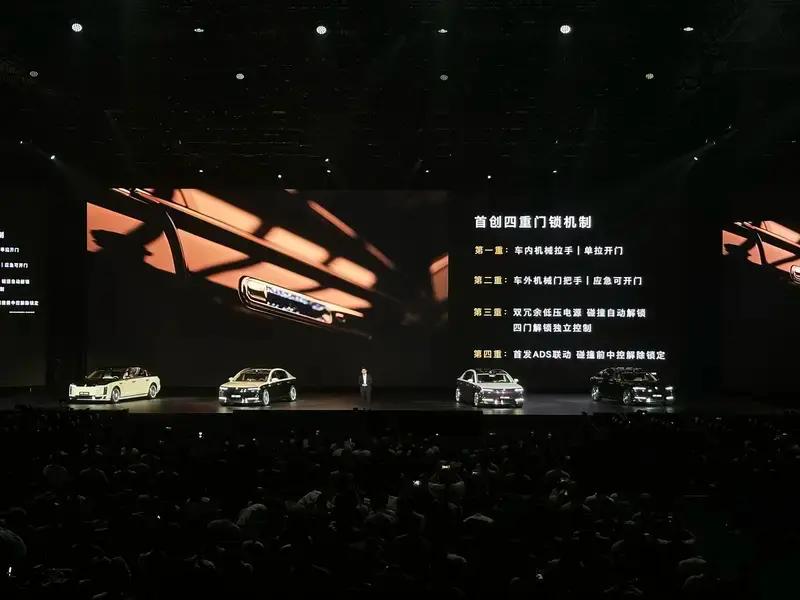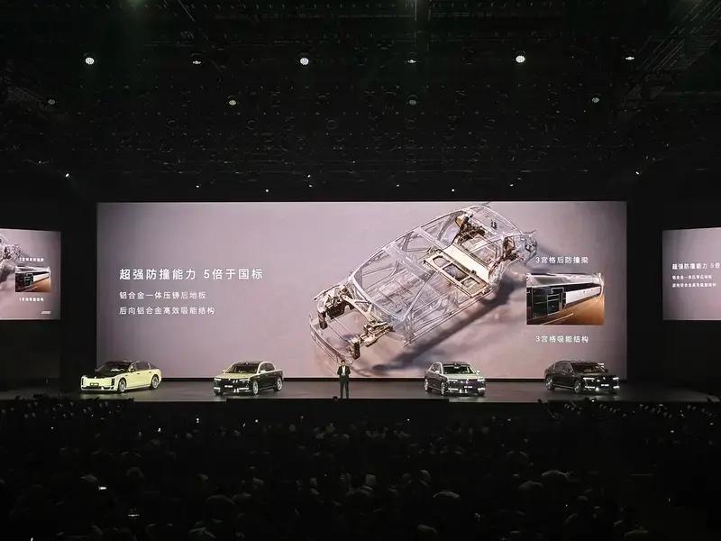 尊界S800搭载了全新的玄武架构,拥有10横9纵车身架构,配备了2000MPa的加强一体式门环,侧车顶最大承压156kN,整车扭转刚度53300N·m/deg。此外,新车全车13气囊超高配置,四重门锁机制含ADS联动解锁。