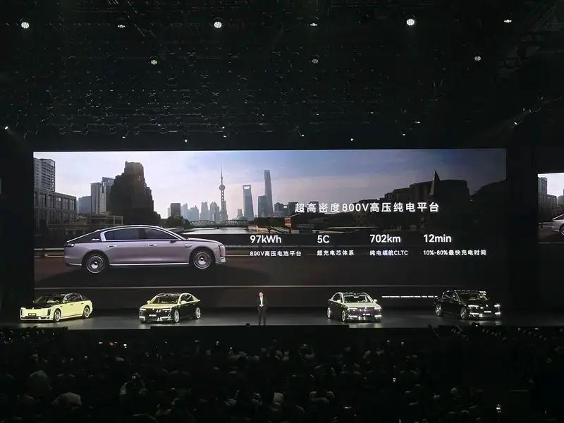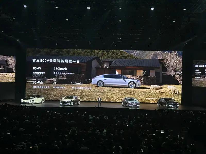 尊界S800纯电版车型,采用800V高压平台,拥有97kWh电池包,支持5C超充,CLTC综合续航702km,10%-80%最快充电时间12min。增程版车型配备800V雪鸮智能增程平台,最大发电功率80kW,配备了65kWh电池,拥有6C超充电芯体系,10-80%最快充电时间10.5min。双电机版综合续航1333km,纯电续航400km。三电机版车型综合续航1200km,纯电续航365km。