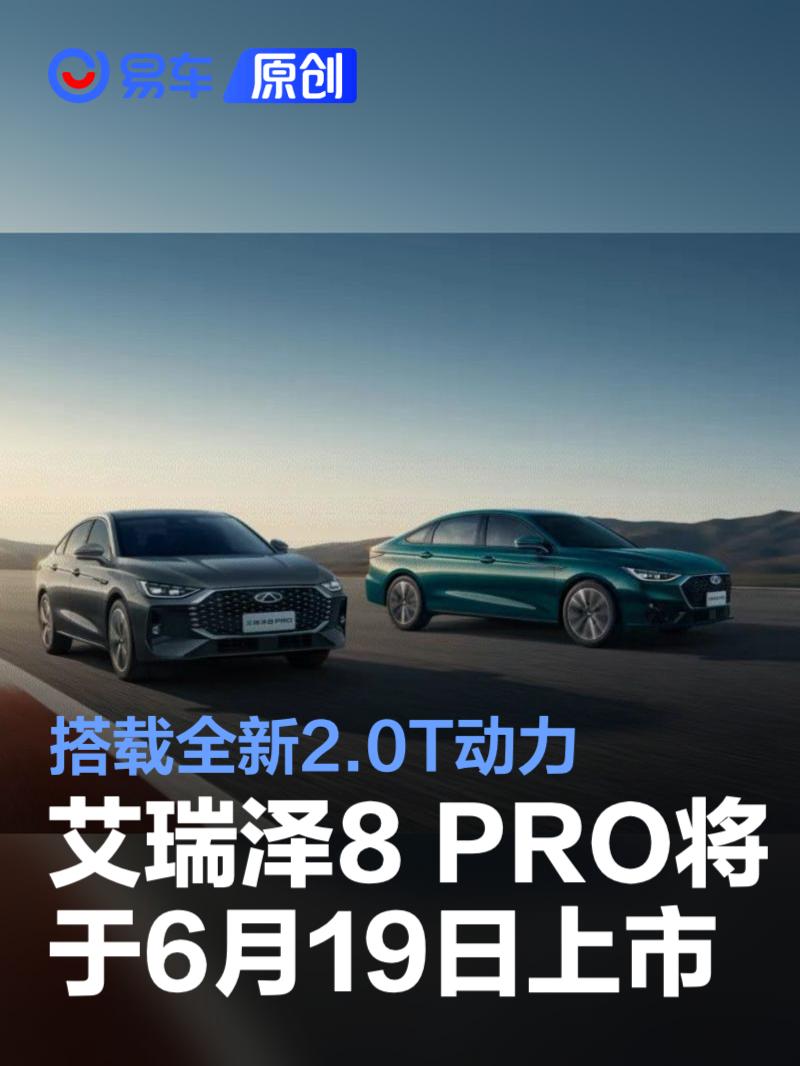 易车讯 6月18日,我们从官方渠道获悉,奇瑞艾瑞泽8 PRO将于6月19日上市。新车针对外观进行了优化,搭载奇瑞全新2.0T涡轮增压发动机。