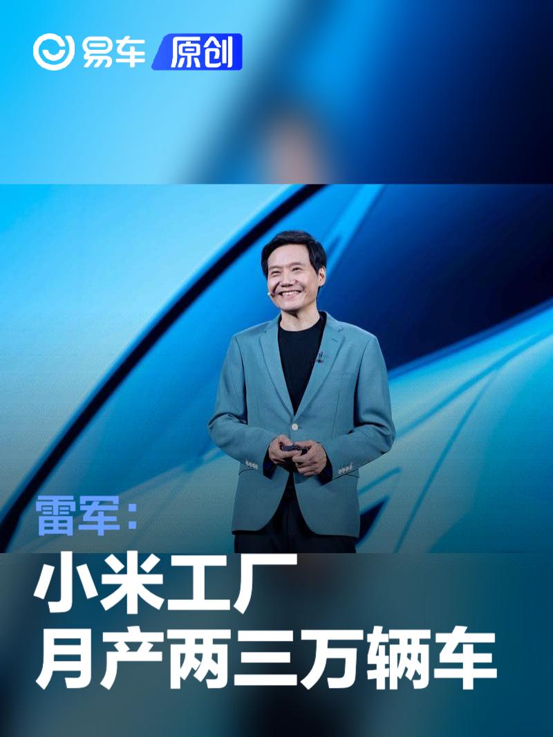 易车讯 据媒体报道称,小米集团创始人雷军在“活力中国调研行”活动上表示:“小米汽车工厂目前每月能生产两三万辆车,工厂实现了高度自动化,绝大部分工序都由机器完成。”