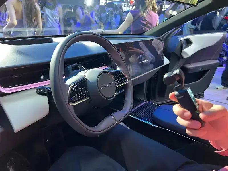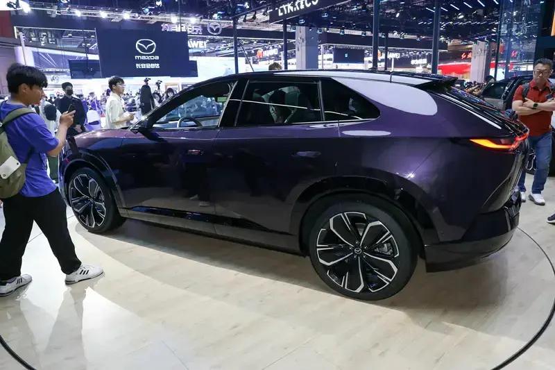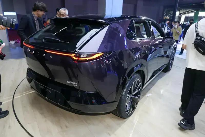 马自达EZ-60基于长安EPA平台打造,提供纯电和增程两种动力供选择,是马自达的第二款新能源车型。外观方面,新车延续了马自达“魂动”设计,并采用了全新的紫色系车漆。前脸采用了全新设计的中网,分体式大灯设计,棱角分明的日行灯贯穿式设计,极具未来感。前包围造型夸张,展现出运动氛围。