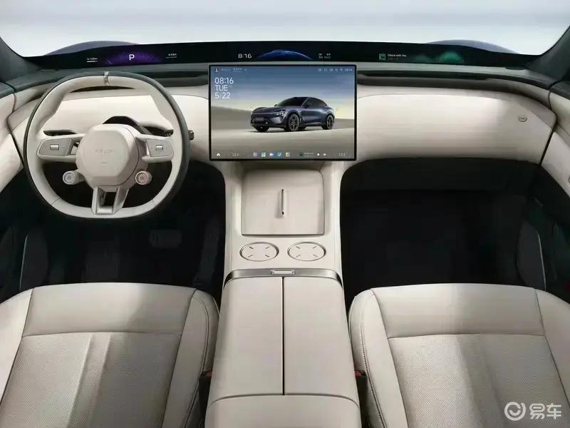 内饰方面,新车延续了家族式设计语言,继续采用了家族式方向盘,拥有100%软包覆,并在仪表台上方配有1/4螺母,方便用户进行个性化拓展。中控屏幕采用16.1寸3K中控大屏,此外新车拥有两个后排拓展屏。
