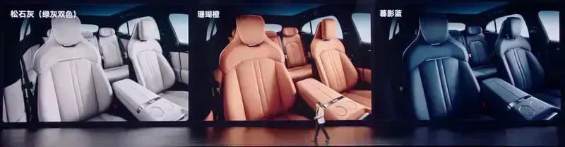 座椅方面,新车前排均配备了零重力座椅,主副驾支持123度躺平和10点式按摩。此外,新车后排靠背支持电动调节,角度支持135度调节。新车拥有松石灰、珊瑚橙、暮影蓝三种颜色。