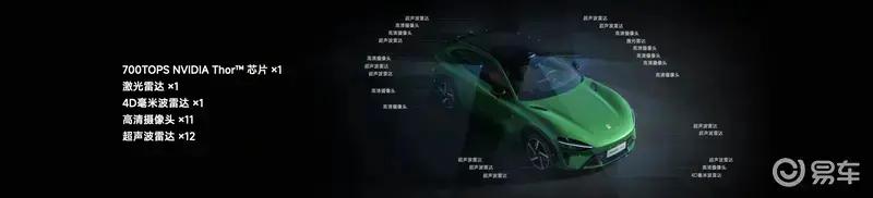 辅助驾驶方面,新车全系标配英伟达Thor U芯片,算力达700TOPS。此外,新车配备了4D毫米波雷达,可以提升雨雾天行车安全,提升前前车急刹和雨雾天气穿透识别能力。