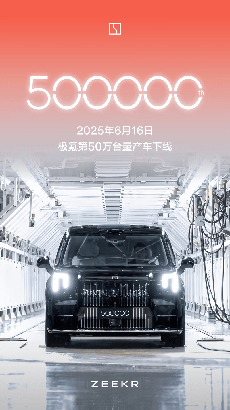 易车讯 6月16日,极氪官方宣布第50万台量产车,009光辉正式下线,从2021年10月首台001下线至今,官方称用时44个月刷新“豪华纯电”车型的最快纪录。