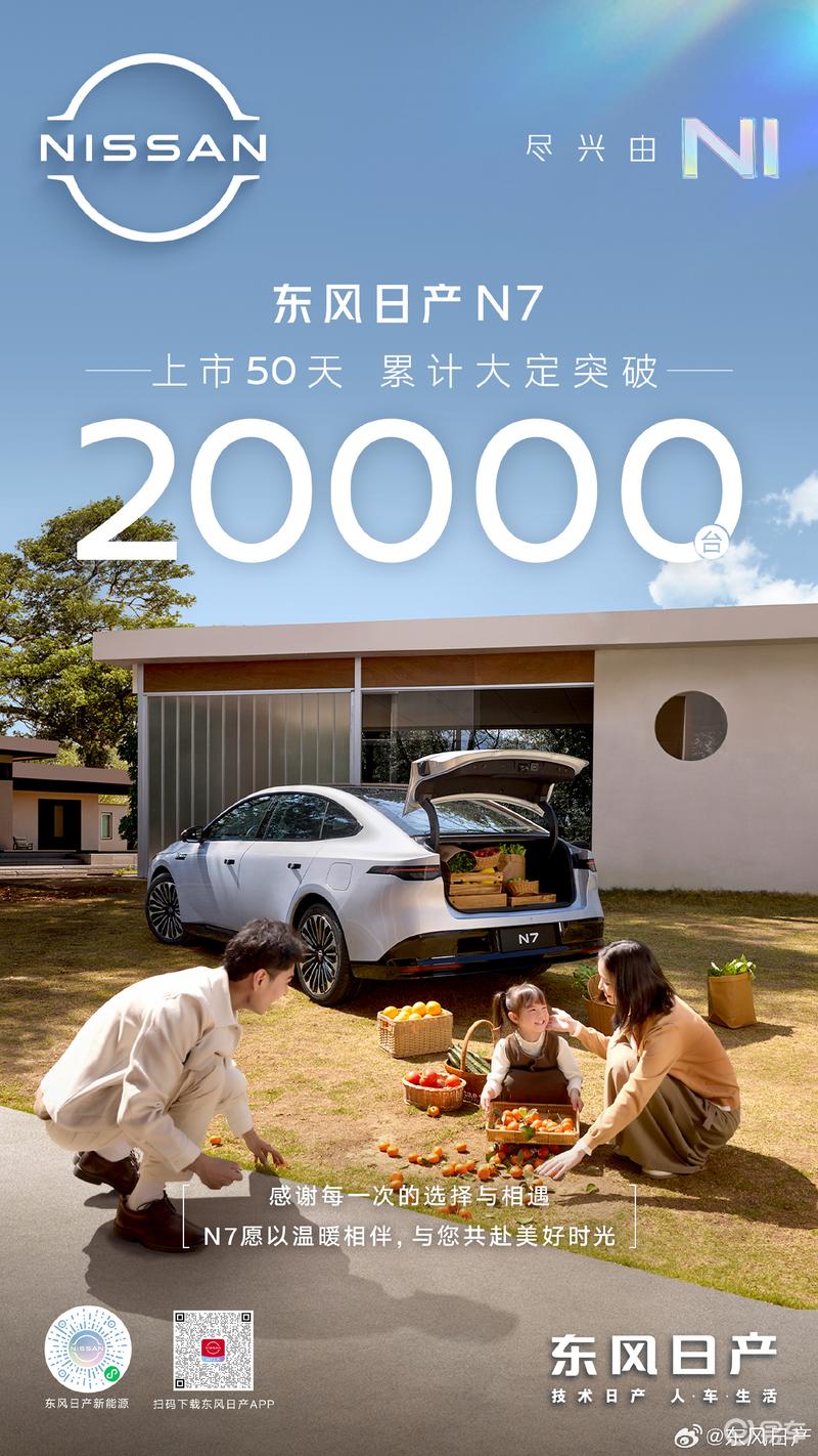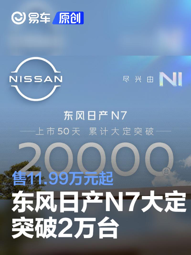易车讯 6月16日,东风日产宣布东风日产N7上市50天大定突破20000台。东风日产N7于4月27日正式上市,共推出5款车型,售11.99-14.99万元。