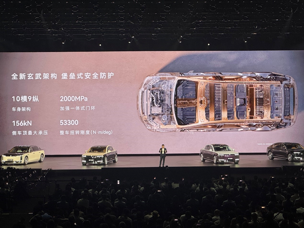 看得见的地方是质感,看不见的地方,尊界S800也给够了安全感。尊界S800采用了全新玄武车身架构设计,1500MPa+热成型钢占比超24%、超高强钢与铝含量占比超92%,侧车顶最大承压达16吨,防撞能力是国标的5倍。和传统百万级豪车相比,尊界S800不仅在制造工艺上保证了严苛的质量管控,而且还将科技应用到了极致。
